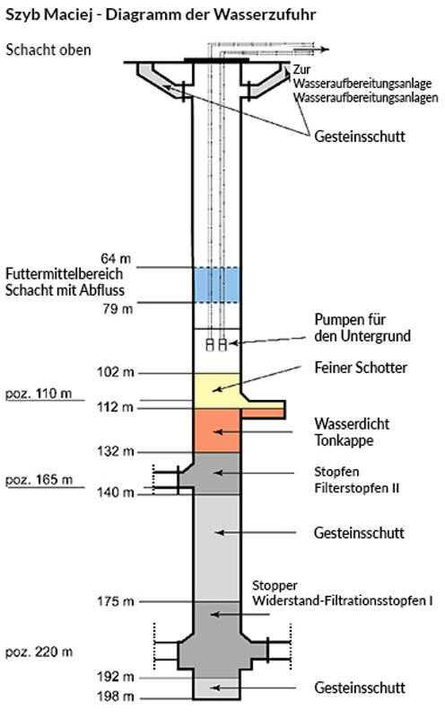 Die Trinkwasserfassung Schacht Maciej wurde 1993 in Zabrze-Maciejów im Zuge der Umgestaltung des Bergbauschachts Maciej errichtet, der Anfang des 20. Jahrhunderts von der ehemaligen Concordia-Mine ausgehoben wurde. Im Zusammenhang mit der Beendigung der Kohleförderung und der geplanten Liquidierung der unter- und übertägigen Teile der Bergbauanlage in der Nähe von Schacht Maciej durch den künftigen Eigentümer, d.h. Kopalnia Węgla Kamiennego “Pstrowski”, wurde auch die Liquidierung des stillgelegten Schachts ins Auge gefasst.
